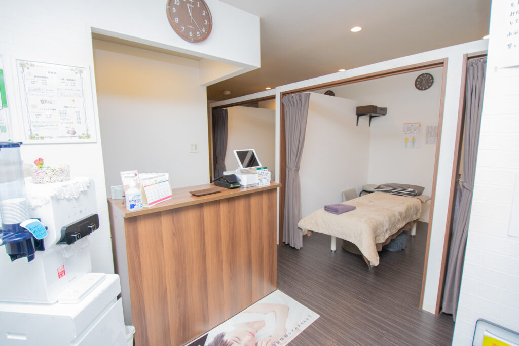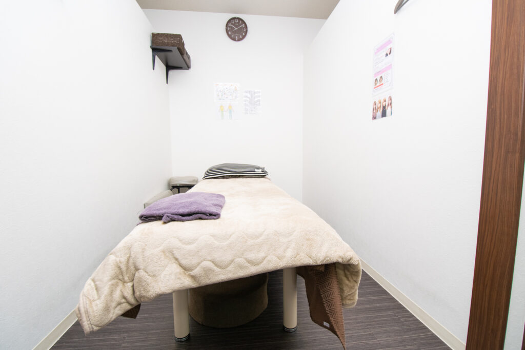 カーテンで仕切ることが出来る個室で整体を受けられますのでプライバシーも保護されます。
